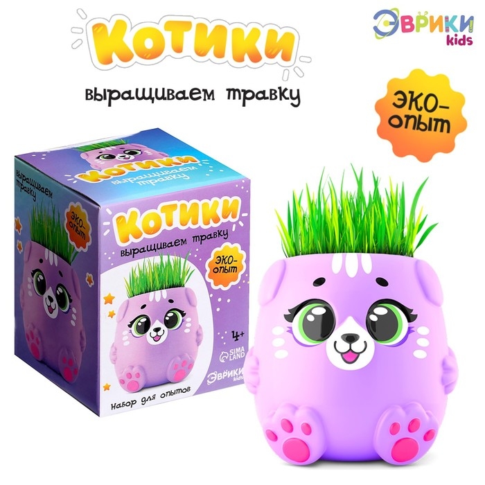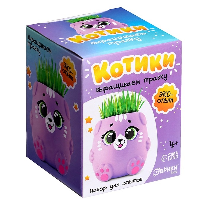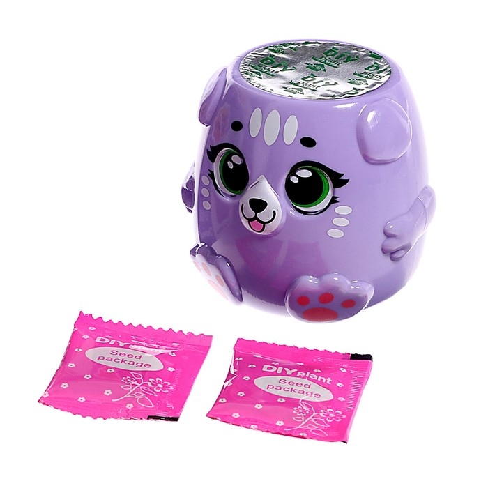 Набор для опытов «Котики. Выращиваем травку», фиолетовый горшочек