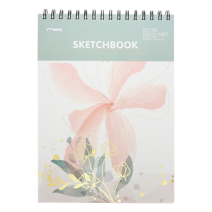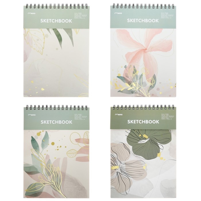 Скетчбук 21х29см для пастели, 30 листов "Цветы", жесткая обложка, плотность 130 гр, МИКС