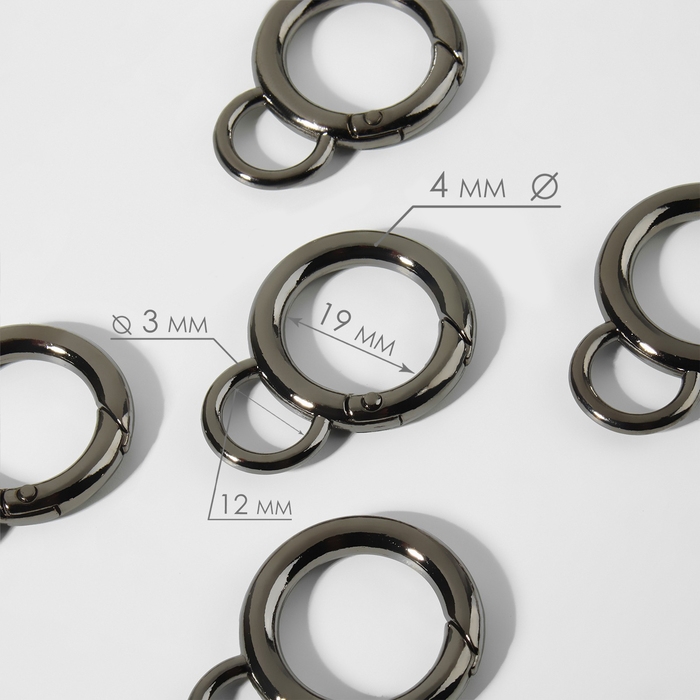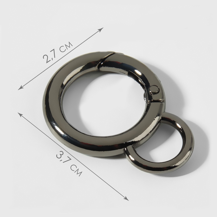 Кольцо-карабин, 37 мм, d = 27/19 мм, толщина - 4 мм, с креплением 12 × 3 мм, 5 шт, цвет чёрный никель