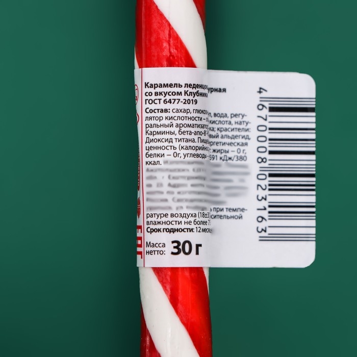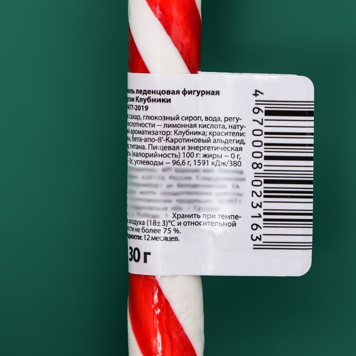 Новый год. Карамель леденцовая Sweet Ness "Трость", со вкусом клубники, 30 г