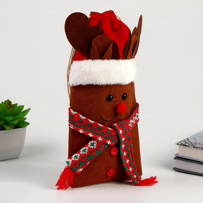Новый год! Мешок для подарков «Олень с шарфиком»