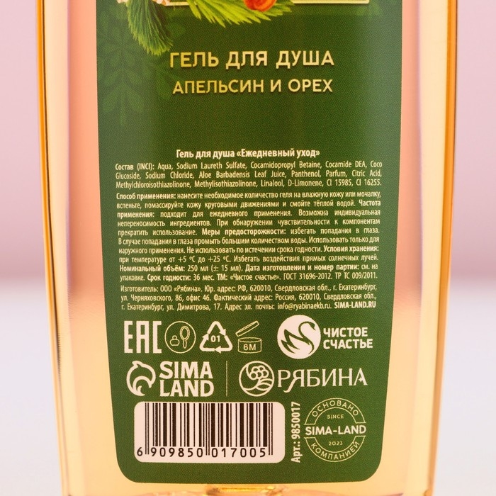 Гель для душа «Чудес в Новом Году!», 250 мл, аромат апельсина и орехов, ЧИСТОЕ СЧАСТЬЕ