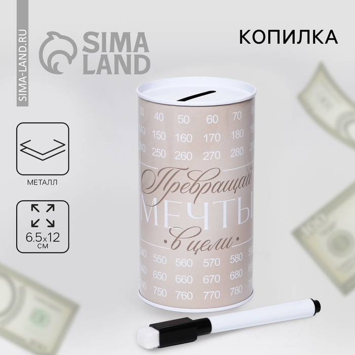 Копилка «Превращай цели в мечты», 12 х 6,5 см