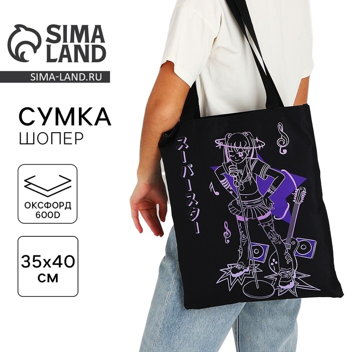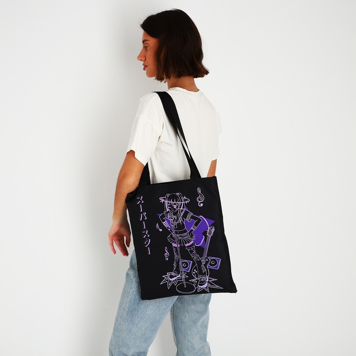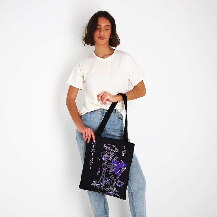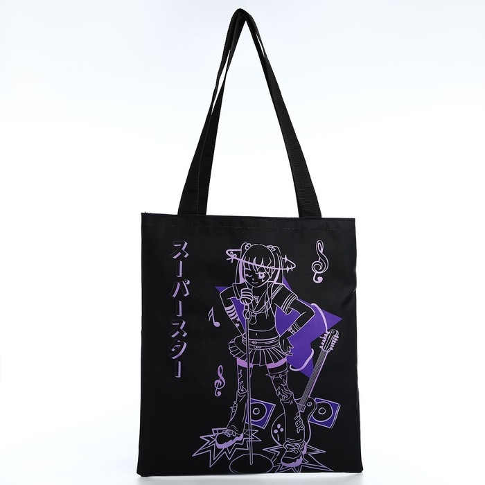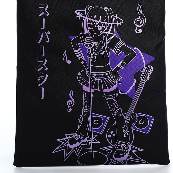 Шопер «Аниме» 35х0.5х40 см, отд без молнии, без подклада, чёрный