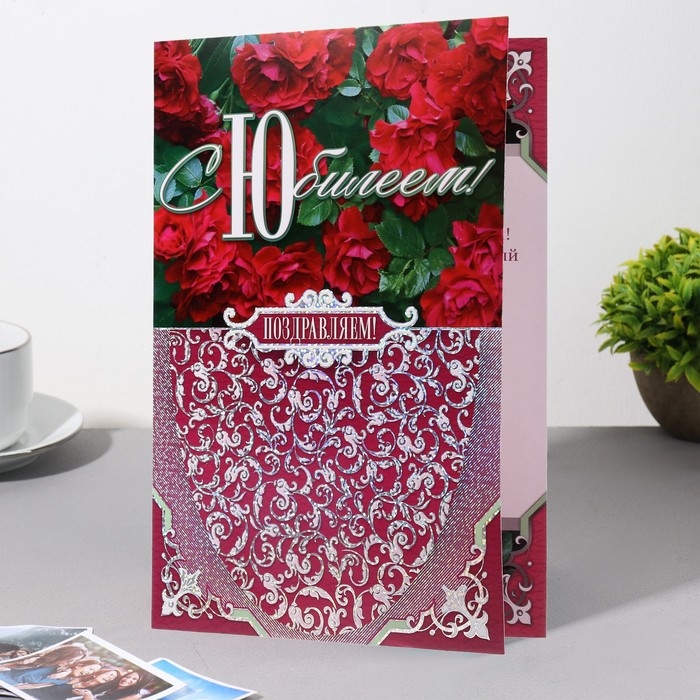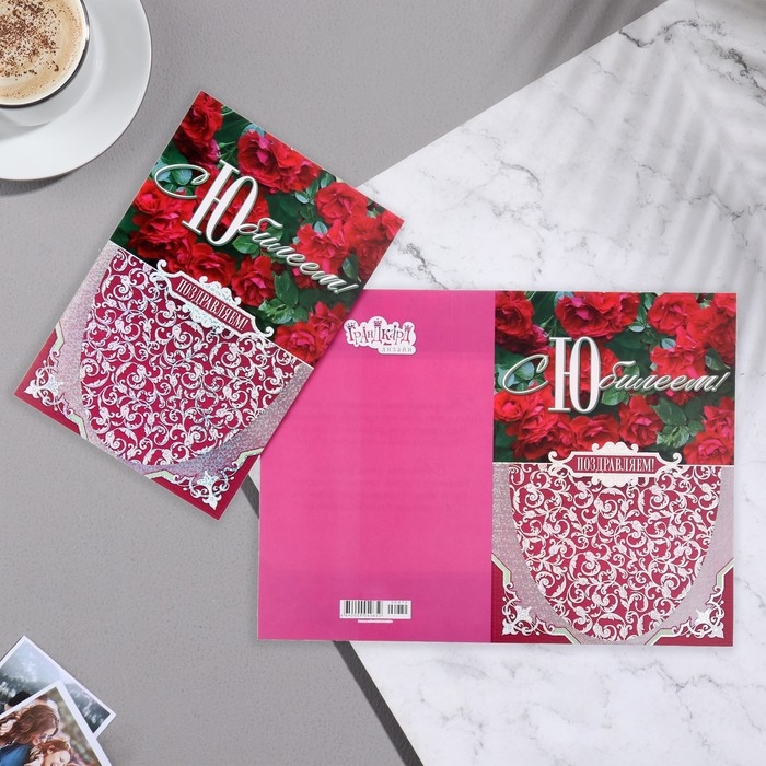 Открытка "С Юбилеем!" тиснение, цветы, А4