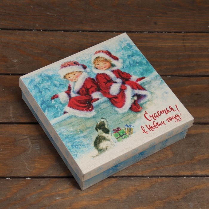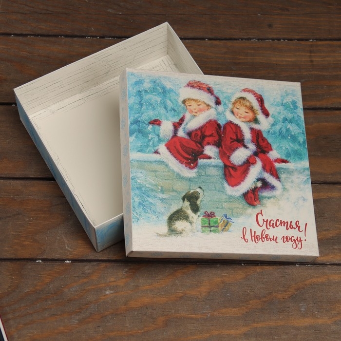 Новый год. Коробка подарочная новогодняя складная, крышка-дно "Счастья в новом году" 20 х 20 х 6 см