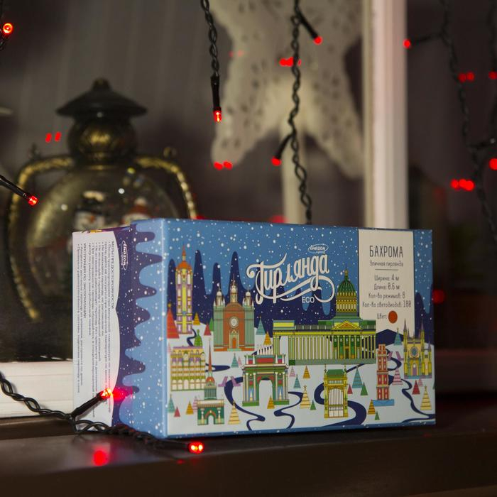 Гирлянда «Бахрома» 4 × 0.6 м, IP44, тёмная нить, 180 LED, свечение красное, 8 режимов, 220 В