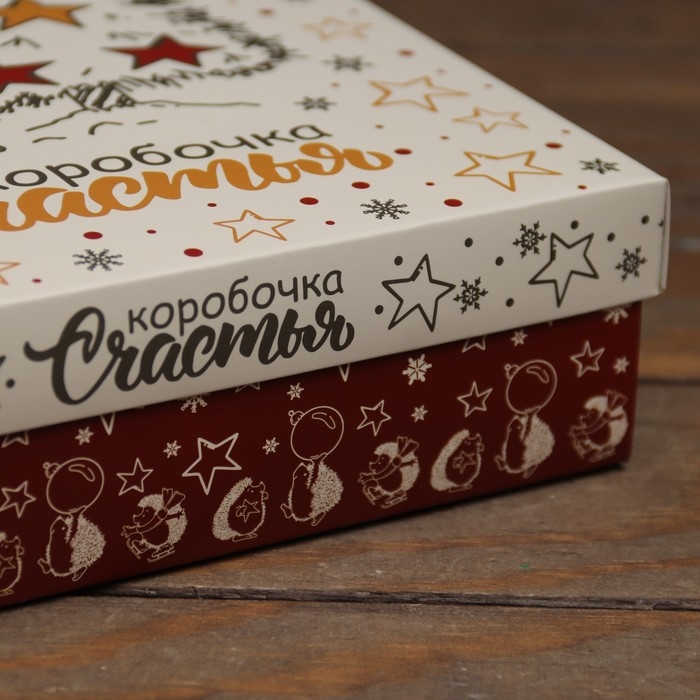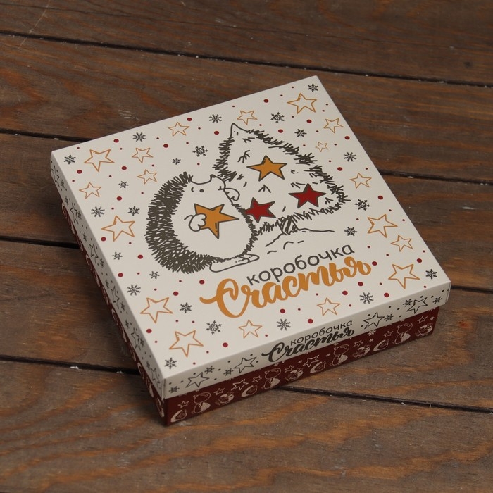 Новый год. Коробка подарочная новогодняя складная, крышка-дно "Коробочка счастья" 20 х 20 х 6 см