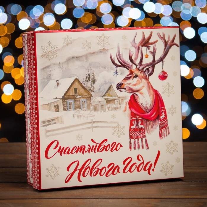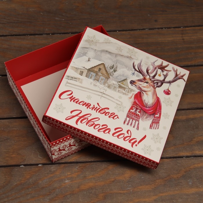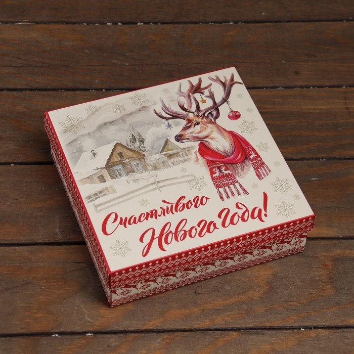 Новый год. Коробка подарочная новогодняя складная, крышка-дно "Счастливого Нового Года" 20 х 20 х 6 см