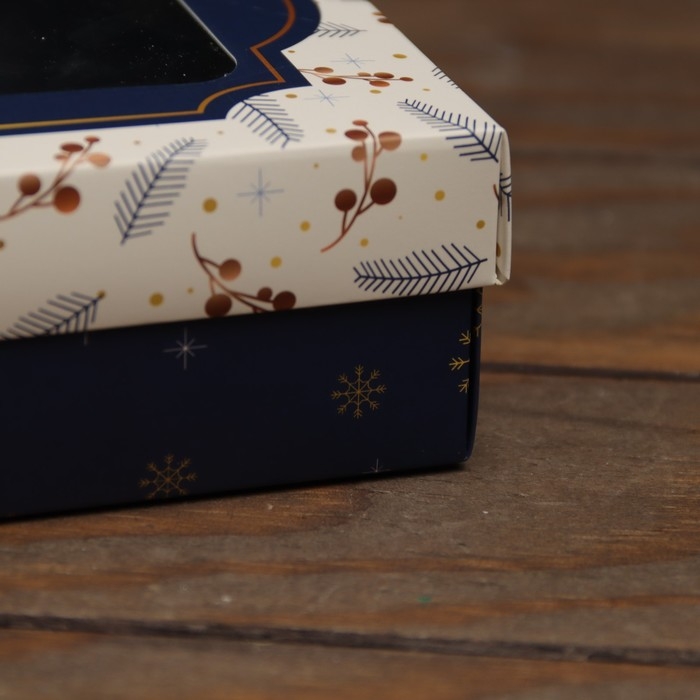 Новый год. Коробка подарочная новогодняя складная, крышка-дно, с окном "Happy New Year" 16,5 х 12,5 х 5,2 см