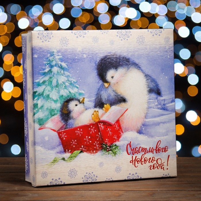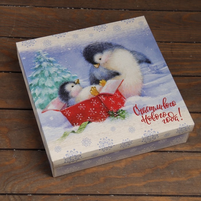 Новый год. Коробка подарочная новогодняя складная, крышка-дно "Счастливого Нового Года" 30 х 30 х 8 см