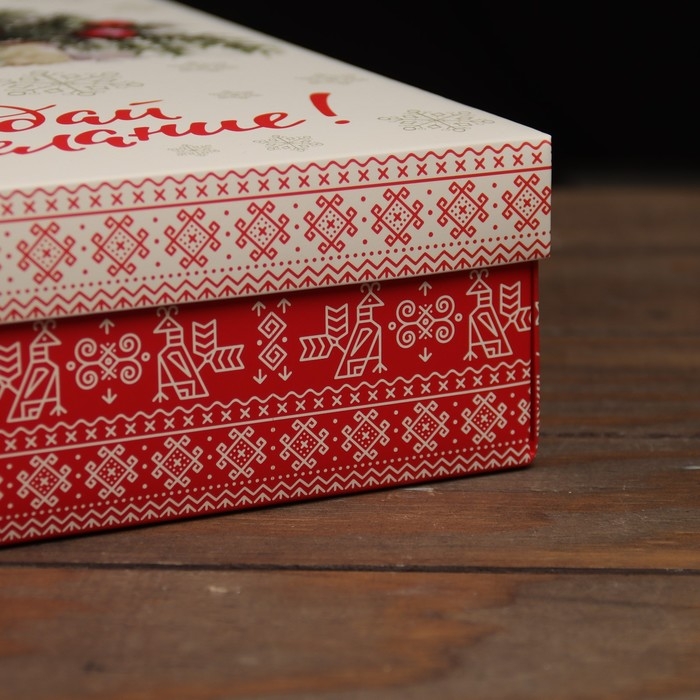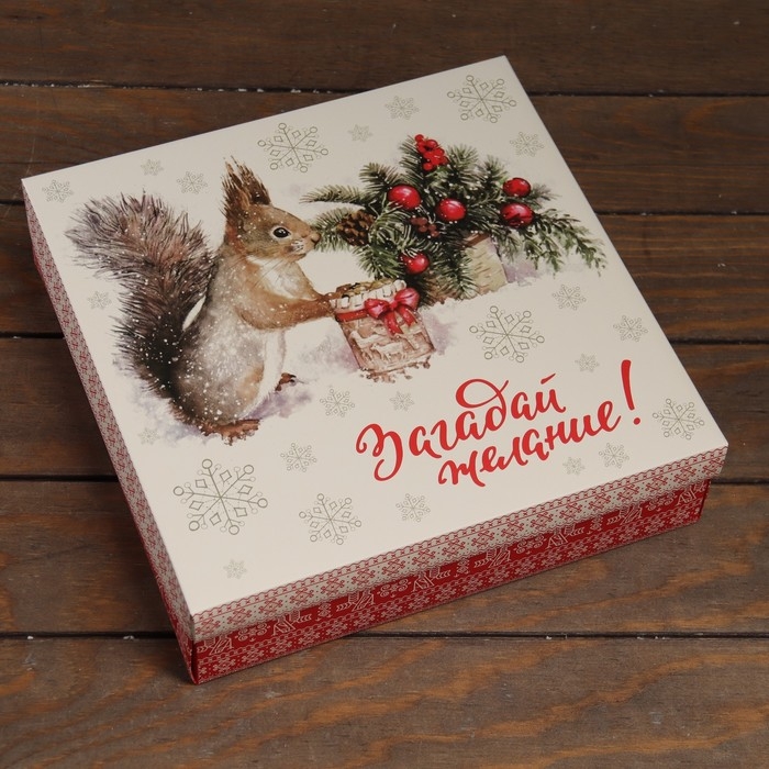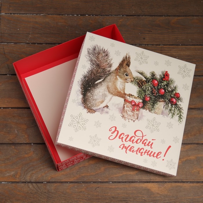 Новый год. Коробка подарочная новогодняя складная, крышка-дно "Загадай желание" 30 х 30 х 8 см