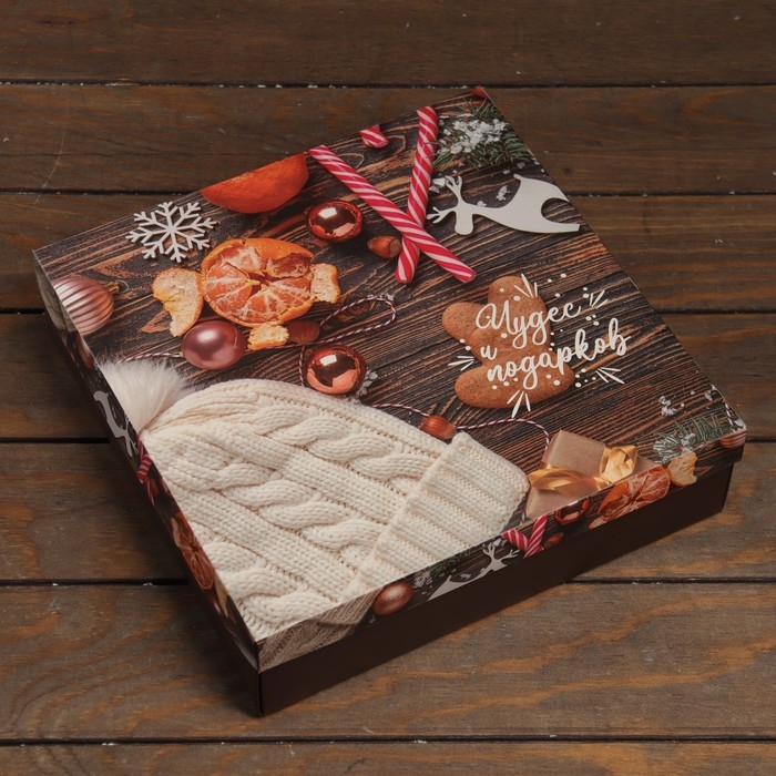 Новый год. Коробка подарочная новогодняя складная, крышка-дно "Атмосфера Нового Года" 30 х 30 х 8 см