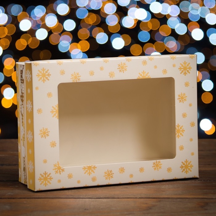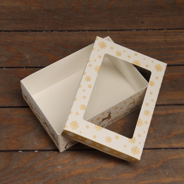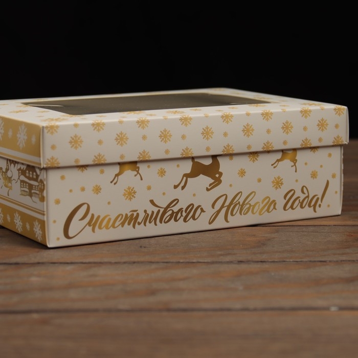 Новый год. Коробка подарочная новогодняя складная, крышка-дно, с окном "Счастливого Нового Года" 21 х 15 х 7 см