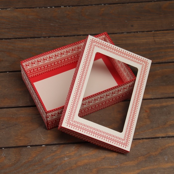 Новый год. Коробка подарочная новогодняя складная, крышка-дно, с окном "Новогодний Олень" 21 х 15 х 7 см