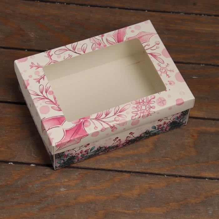 Новый год. Коробка подарочная новогодняя складная, крышка-дно, с окном "Merry Christmas" 21 х 15 х 7 см