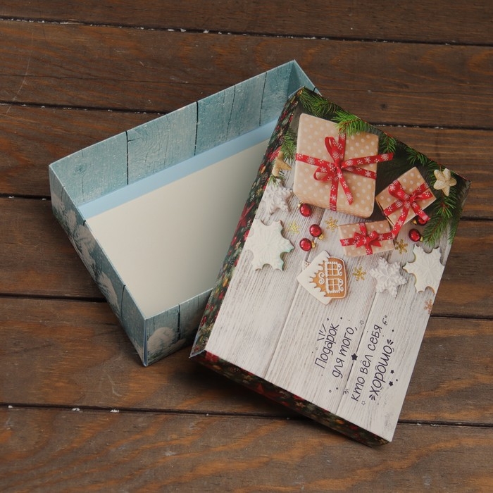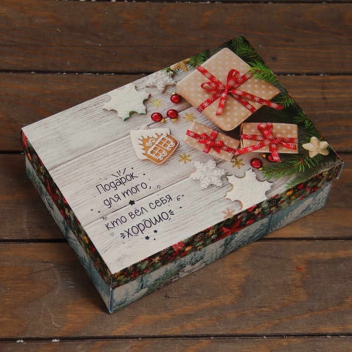 Новый год. Коробка подарочная новогодняя складная, крышка-дно "Подарок для того, кто вел себя хорошо" 24 х 17 х 8 см
