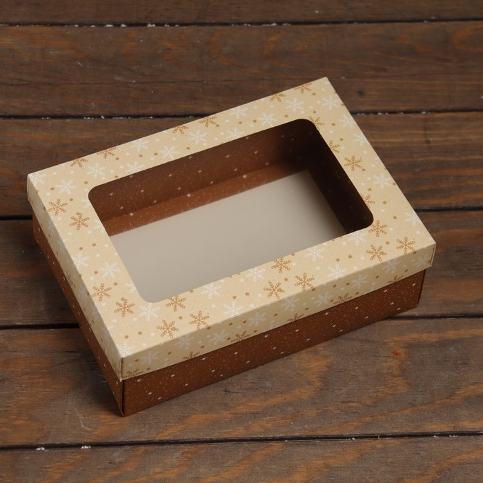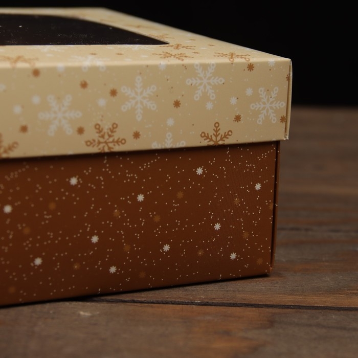 Новый год. Коробка подарочная новогодняя складная, крышка-дно, с окном "Новогодняя снежинка" 24 х 17 х 8 см