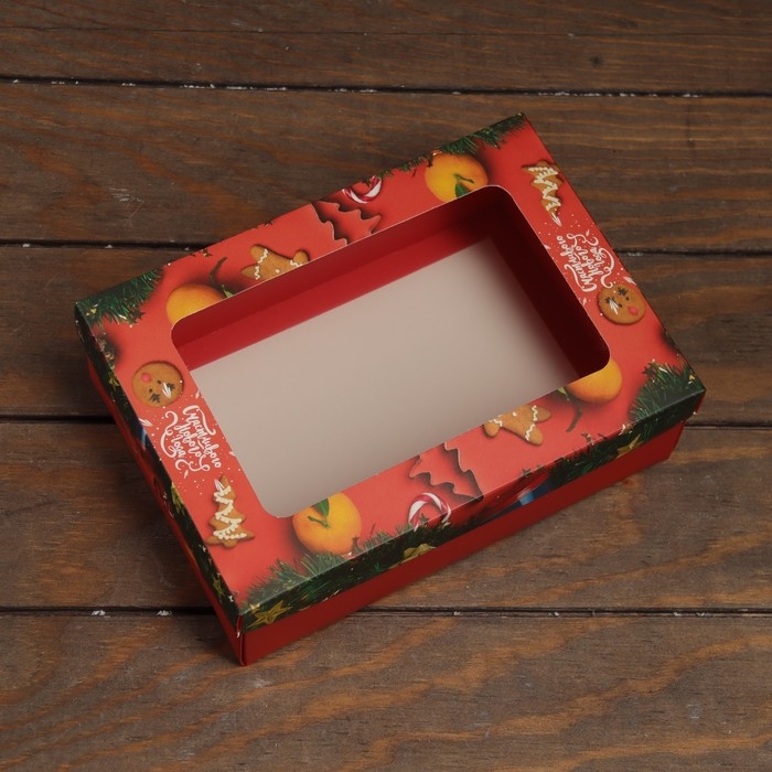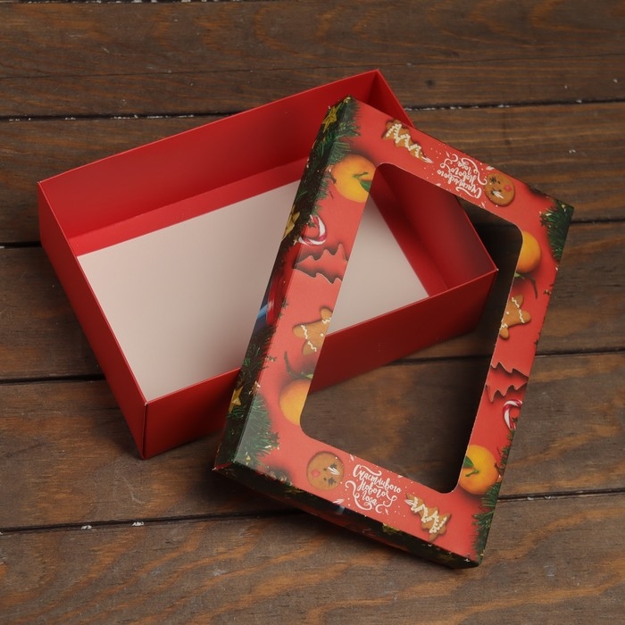 Новый год. Коробка подарочная новогодняя складная, крышка-дно, с окном "Счастливого Нового Года" 24 х 17 х 8 см
