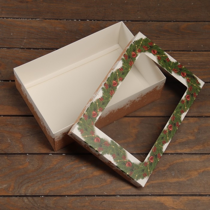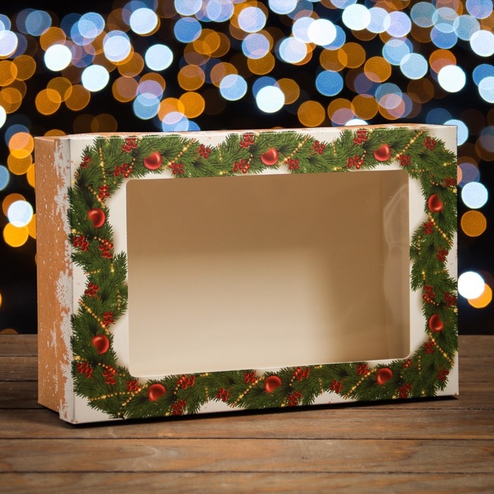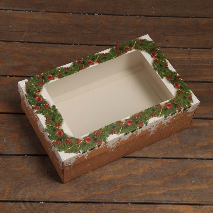 Новый год. Коробка подарочная новогодняя складная, крышка-дно , с окном "Новогодняя сказка" 30 х 20 х 9 см