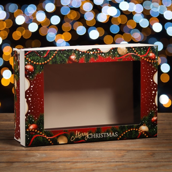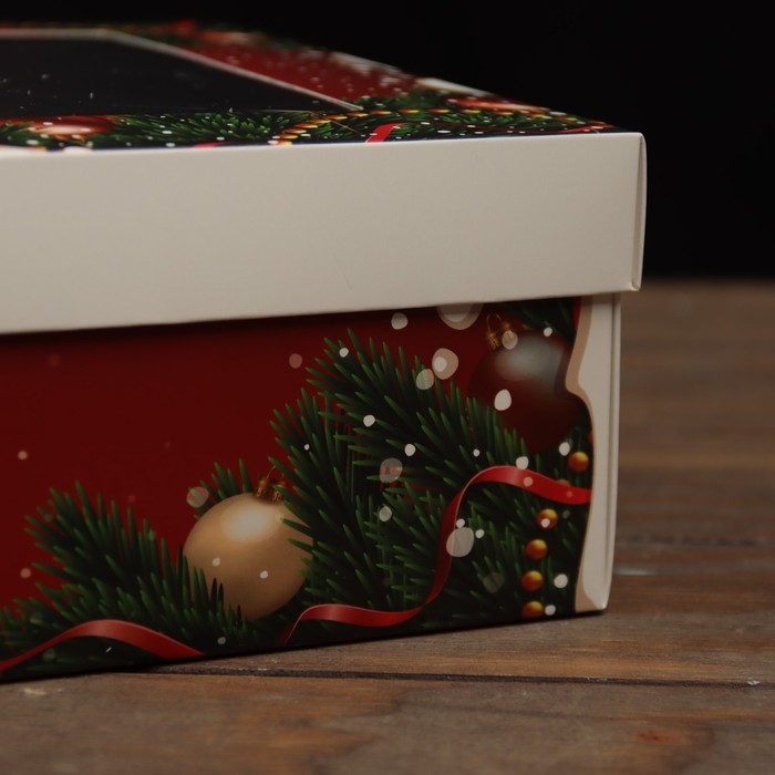Новый год. Коробка подарочная новогодняя складная, крышка-дно , с окном "Счастливого Рождества" 30 х 20 х 9 см