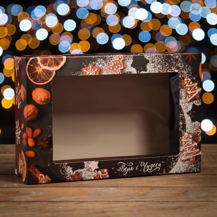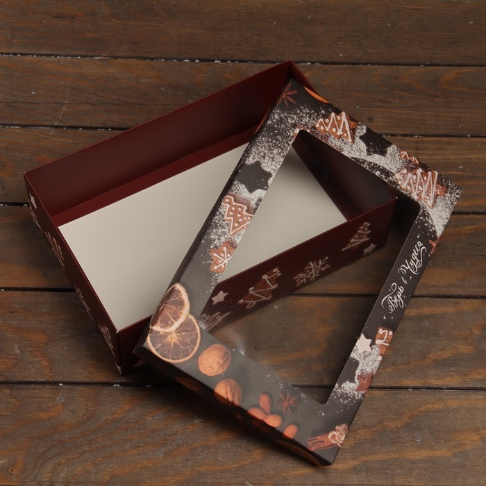 Новый год. Коробка подарочная новогодняя складная, крышка-дно , с окном "Время чудес" 30 х 20 х 9 см