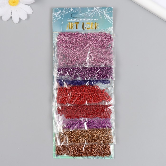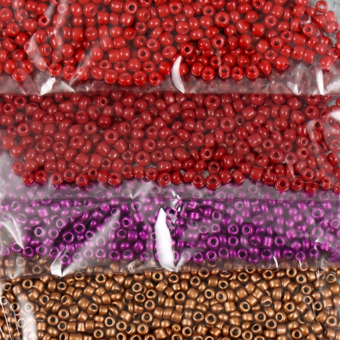 Бисер круглый 12/0 "Красно-фиолетовые" металлик 8 цветов х 10 гр 20х8 см