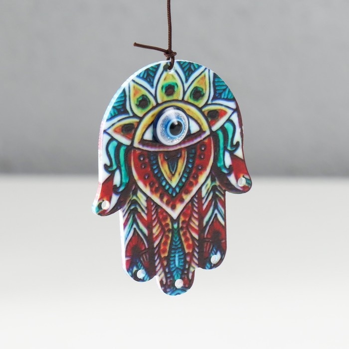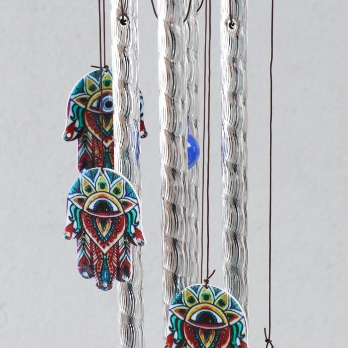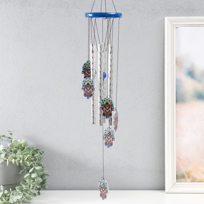 Музыка ветра дерево, металл "Абхая мудра" от сглаза 4 трубочки h= 46 см, синий