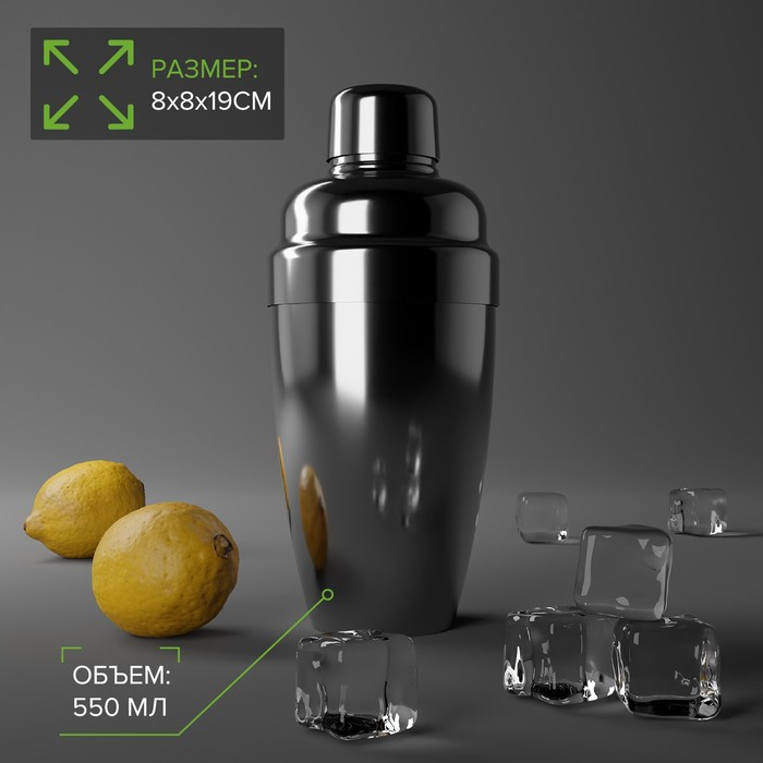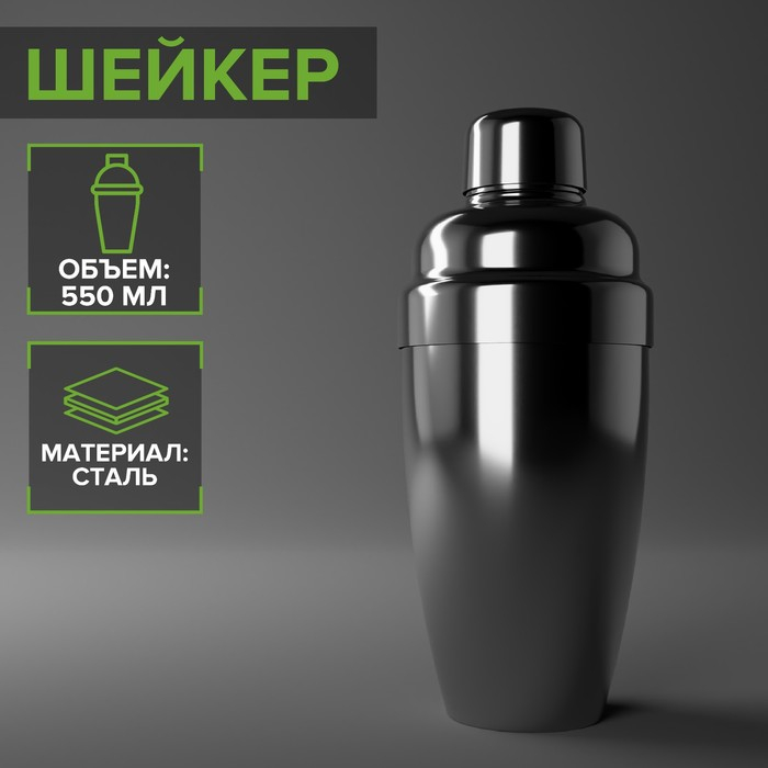 Шейкер из нержавеющей стали, 550 мл, цвет серебряный