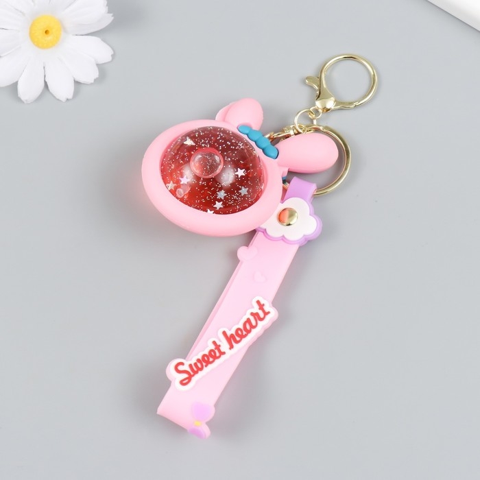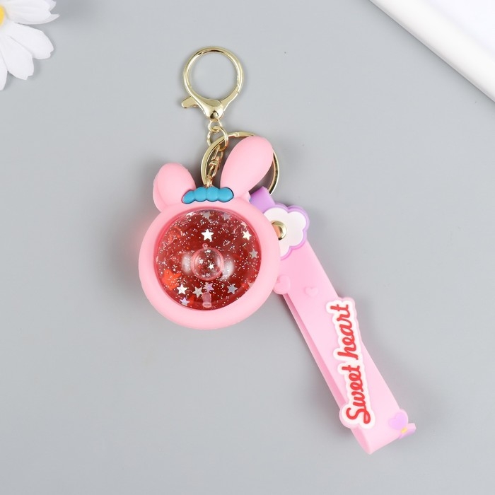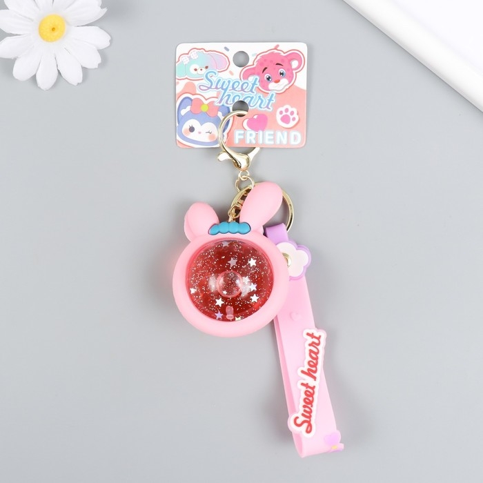 Брелок резина "Шарик-зайка" с браслетом и карабином, розовый 4х5,5х7,4 см