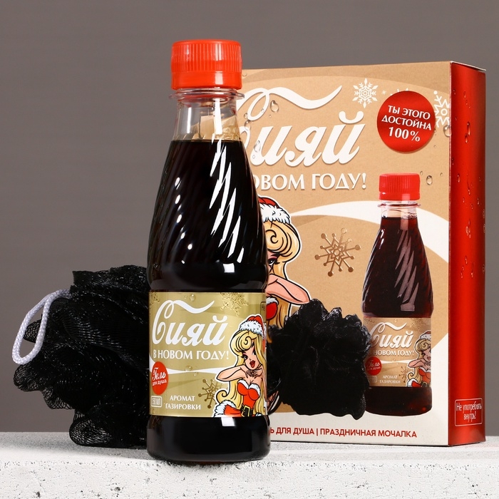 Новогодний подарочный набор косметики «Сияй в Новом Году!», гель для душа 250 мл и мочалка для тела, ЧИСТОЕ СЧАСТЬЕ