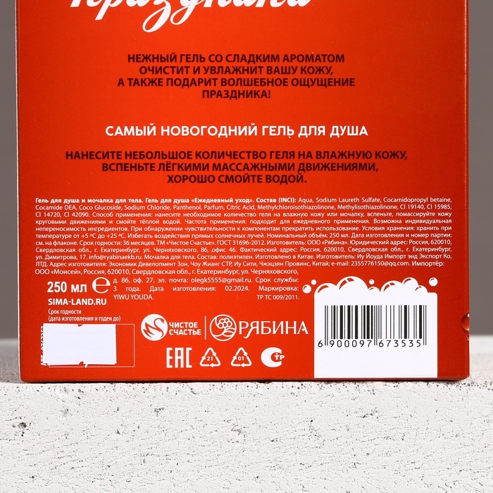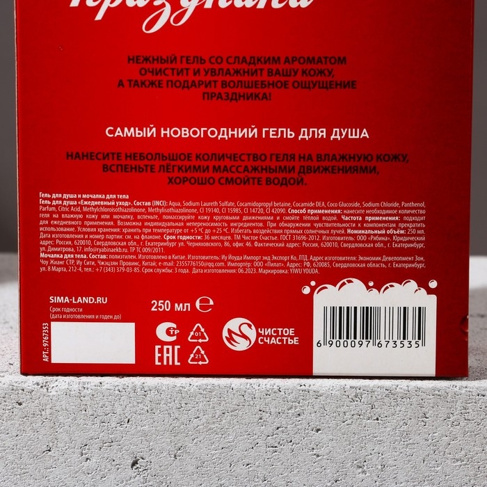 Подарочный набор косметики «Счастья в Новом Году!», гель для душа 250 мл и мочалка для тела, ЧИСТОЕ СЧАСТЬЕ