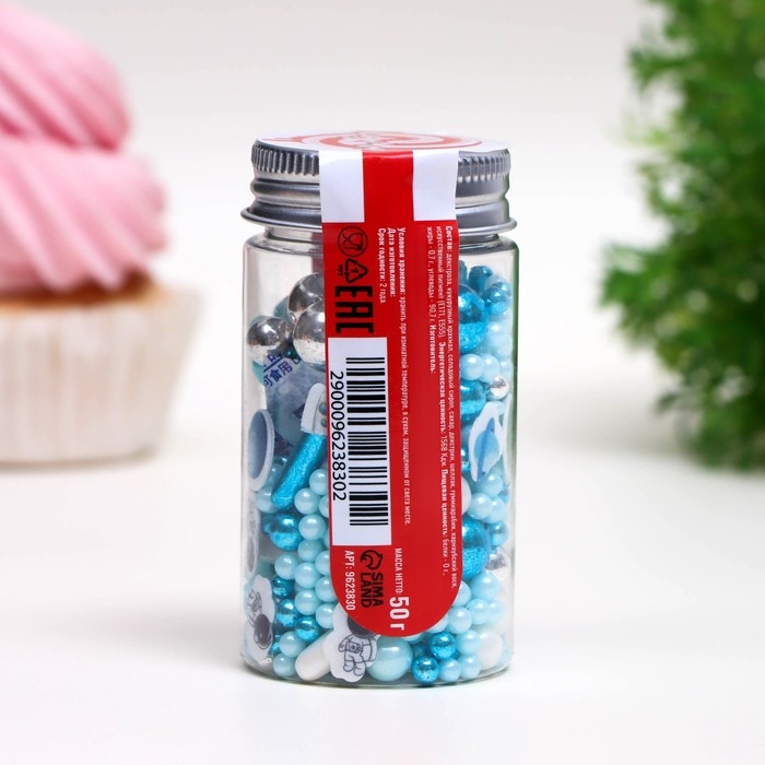 Посыпка кондитерская "Космос", бело-голубая, 50 г