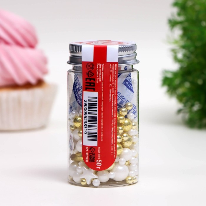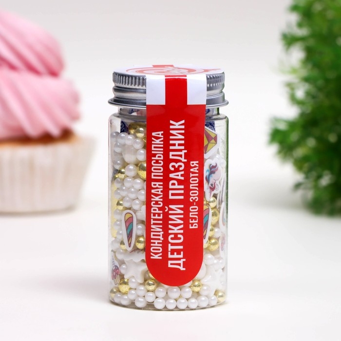 Посыпка кондитерская «Детский праздник», бело-золотая, 50 г