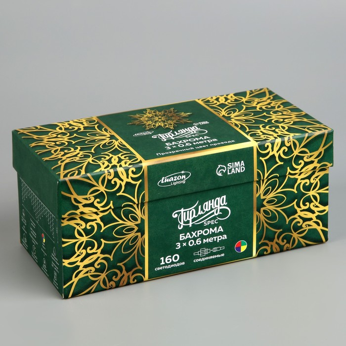 Гирлянда «Бахрома» 3 × 0.6 м, IP44, УМС, прозрачная нить, 160 LED, свечение мульти, 220 В
