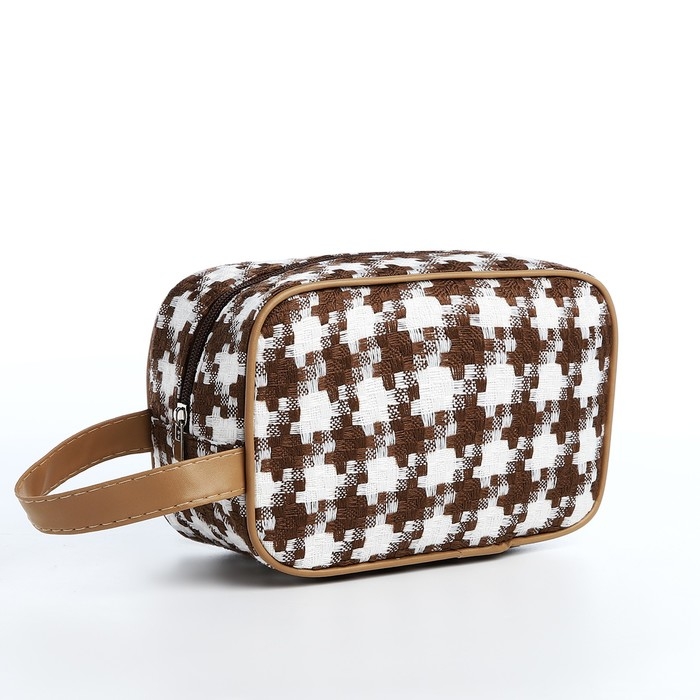Косметичка на молнии, цвет белый/коричневый