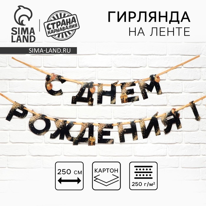 Гирлянда на ленте «С Днем Рождения», 250 см.
