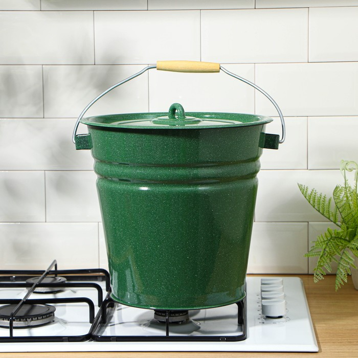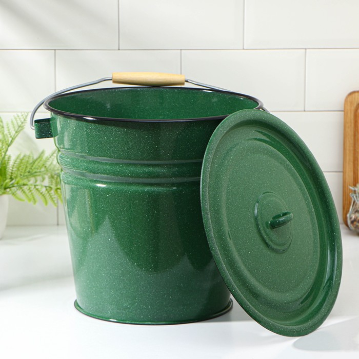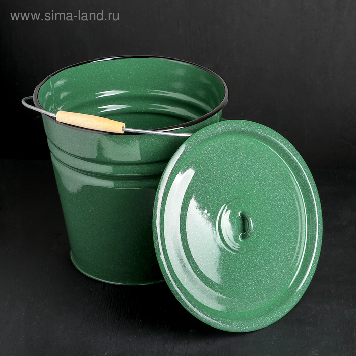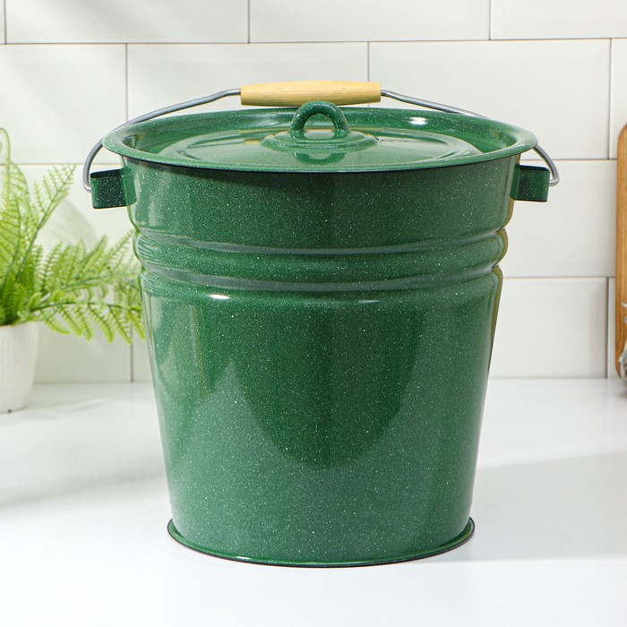 Ведро эмалированное, 12 л, с крышкой, цвет зелёный