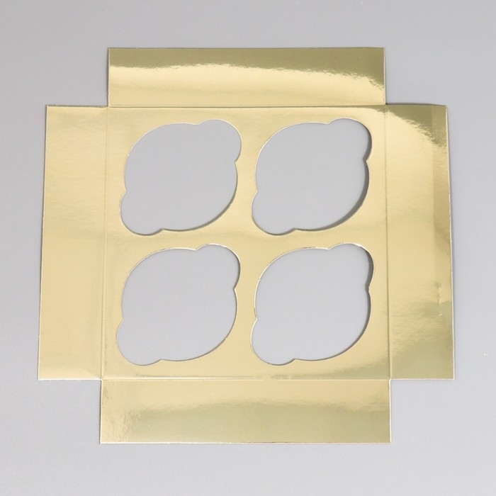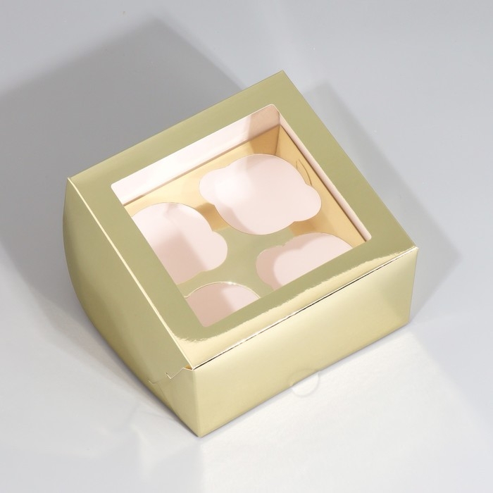 Коробка для капкейков, кондитерская упаковка с окном, 4 ячейки «Шампань», 16 х 16 х 10 см