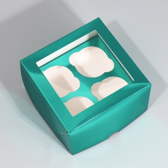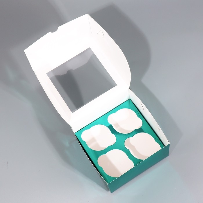 Коробка для капкейков, кондитерская упаковка с окном, 4 ячейки «Голубая», 16 х 16 х 10 см