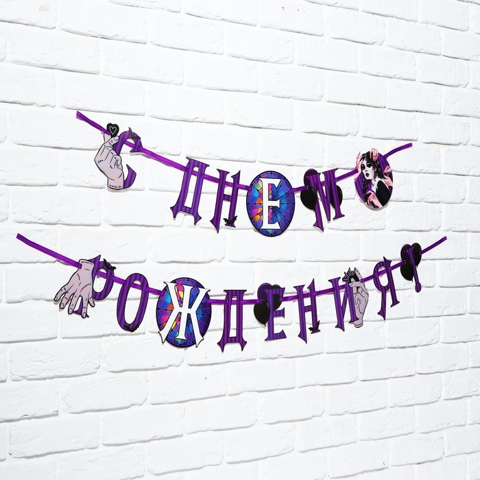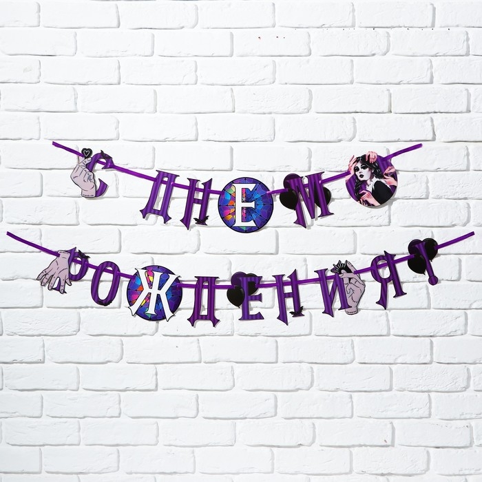 Гирлянда на ленте "С Днем Рождения!", фиолетовая, 250 см