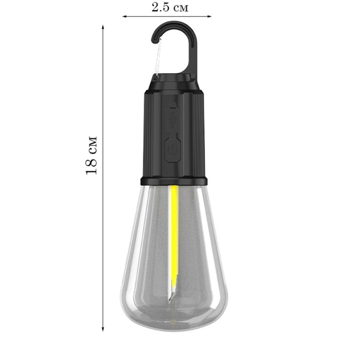 Фонарь кемпинговый аккумуляторный, 100 лм, 400 мАч, 3 режима, с карабином