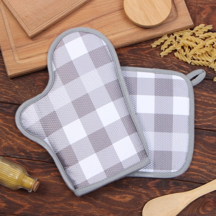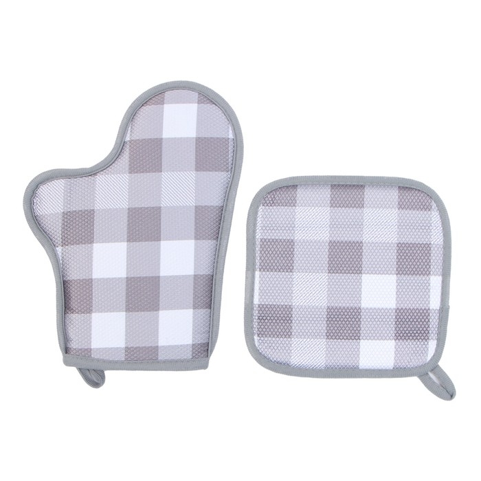 Кух. набор 2 пр. Этель Клетка прих. 20*20 см, вареж-прихв. 27*20 см,100% п/э