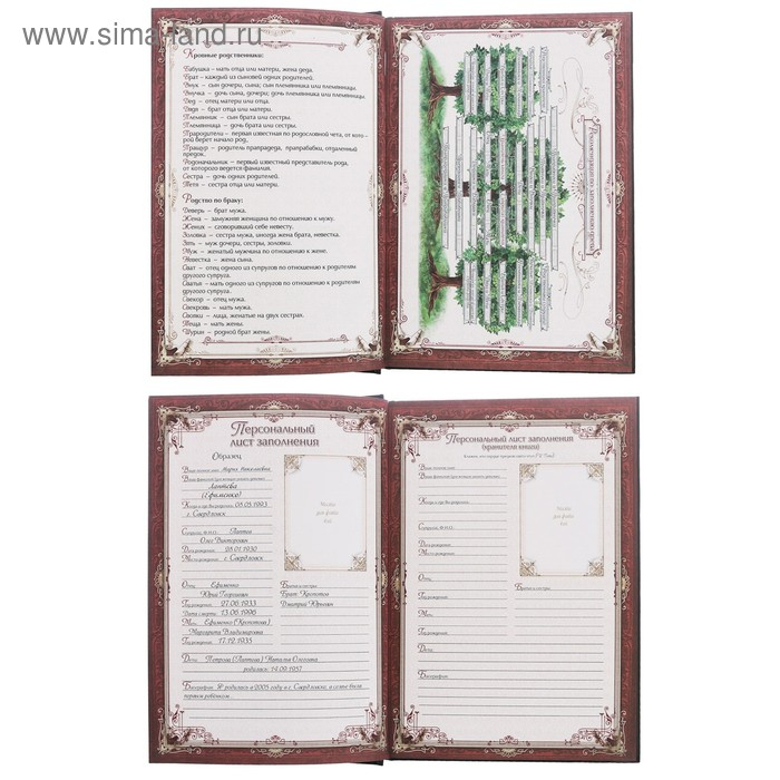 - листы: «Свадьбы нашего рода», «Путешествия нашего рода», «Награды и отличия нашего рода», «Домашние питомцы», «Традиции нашего рода»;