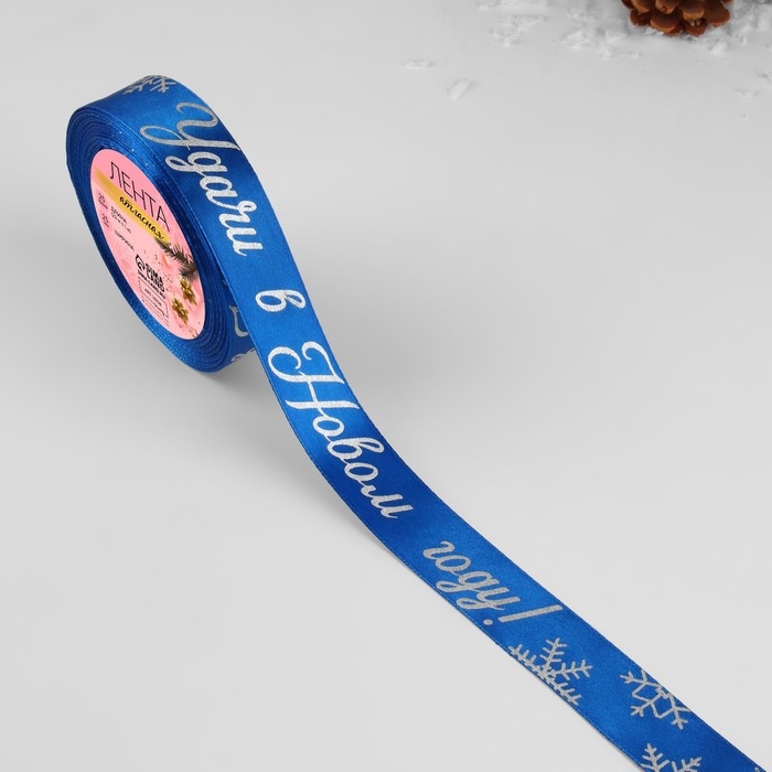 Новый год! Лента атласная с тиснением «Удачи в Новом году!», 25 мм, 23 ± 1 м, цвет синий/серебряный №122