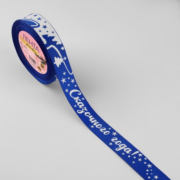 Новый год! Лента репсовая «Сказочного года!», 25 мм, 23 ± 1 м, цвет синий/белый №040