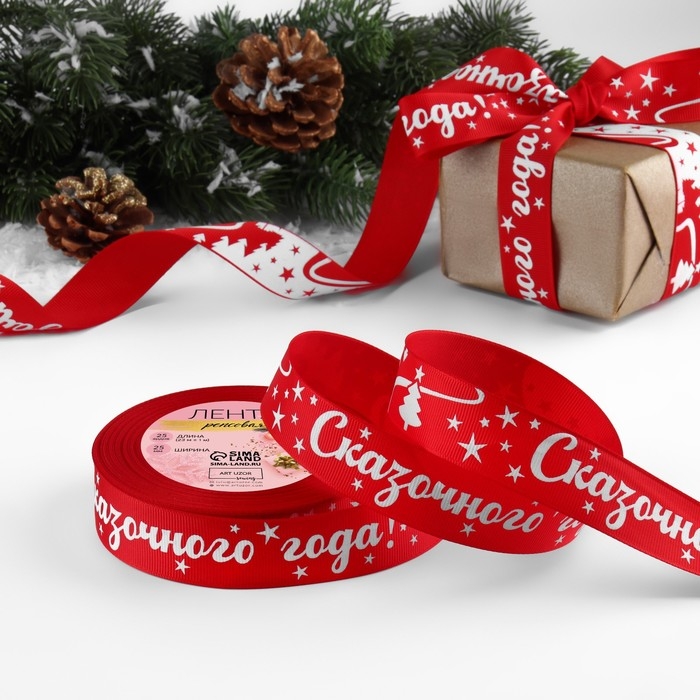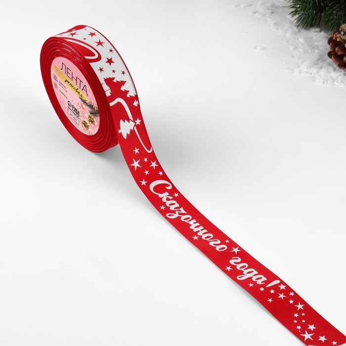 Новый год! Лента репсовая «Сказочного года!», 25 мм, 23 ± 1 м, цвет красный/белый №026