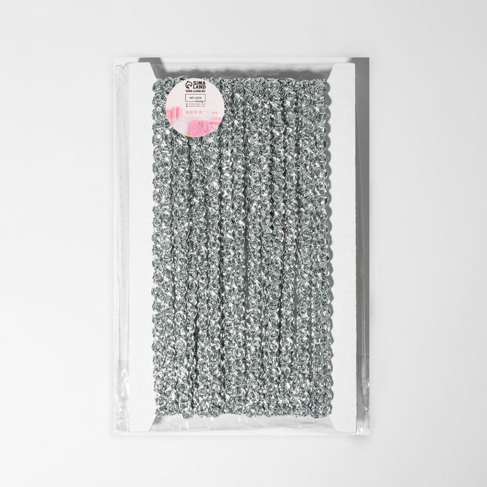 Тесьма декоративная, 6 мм, 10 ± 1 м, цвет серебряный