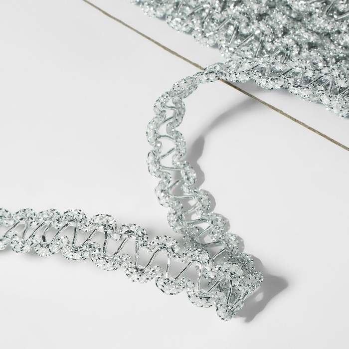 Тесьма декоративная, 10 мм, 10 ± 1 м, цвет серебряный