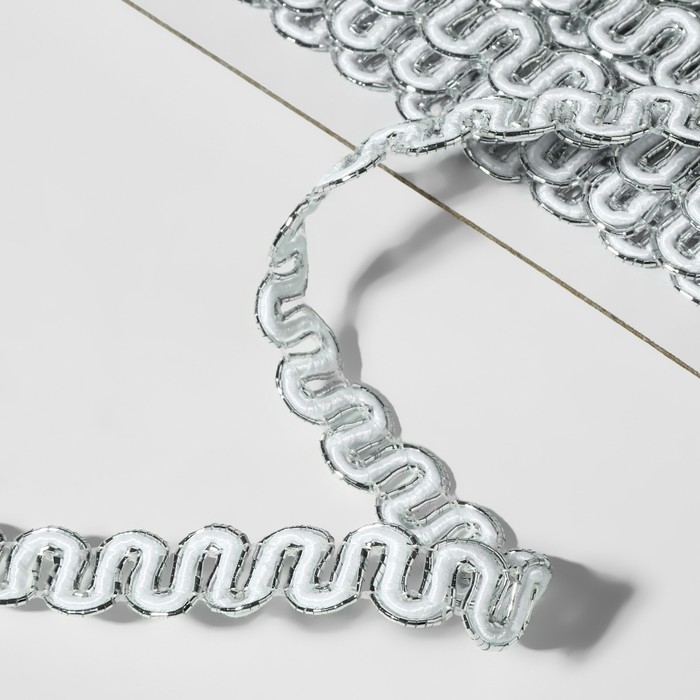 Тесьма декоративная «Волна», 10 мм, 10 ± 1 м, цвет серебряный/белый